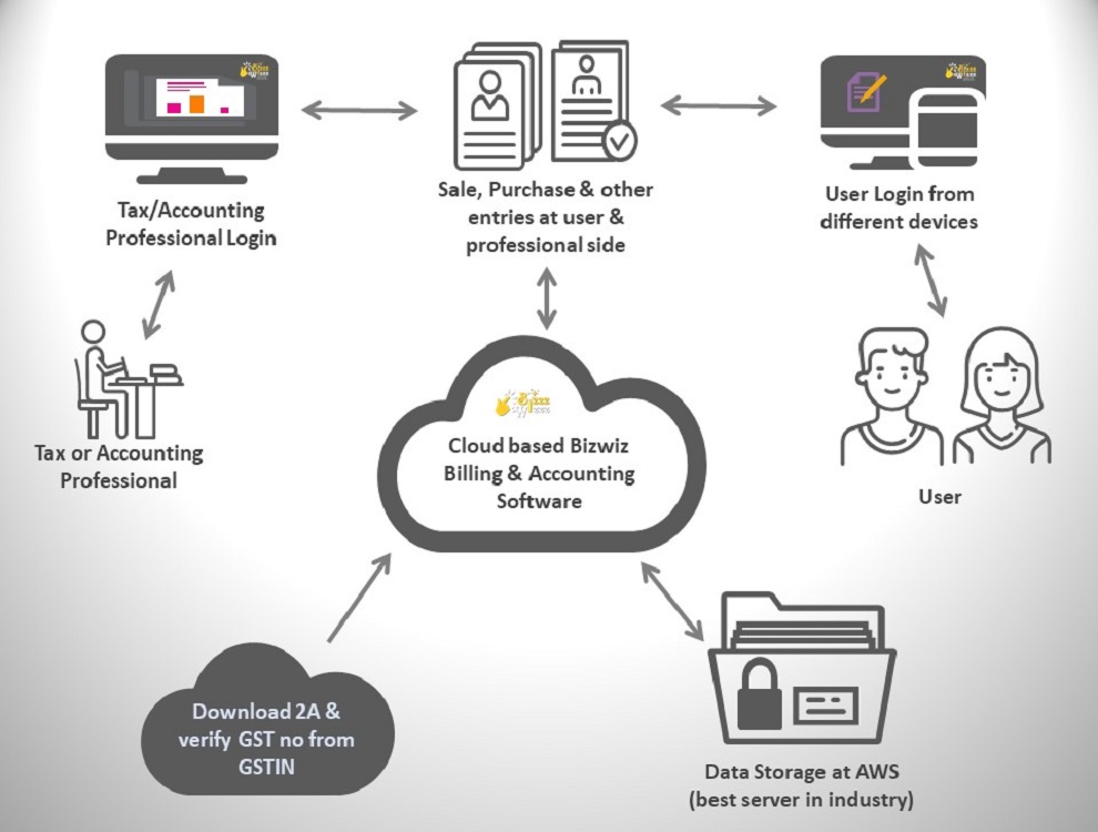 Bizwiz GST billing and accounting software has been designed for both Business users and tax & accounting professionals. Business user can do their billing and accounting work in super easiest way with auto ledger posting facility and at the same place tax & accounting professionals can manage billing & accounting of all the clients from single place.
